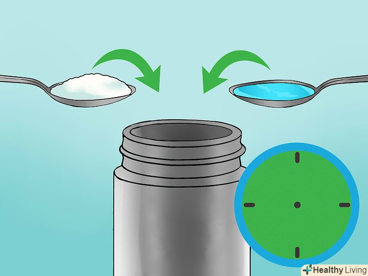Використовуйте питну соду та відбілювач. насипте в пляшку чайну ложку (5 г) відбілювача і чайну ложку (5 г) харчової соди. Заповніть пляшку доверху водою. Залиште пляшку на ніч. На ранок вилийте вміст пляшки, а потім ретельно промийте її водою. Поставте її догори дном, щоб просушити. [8]- Цей метод дозволяє ефективно вивести з пляшки неприємний запах.