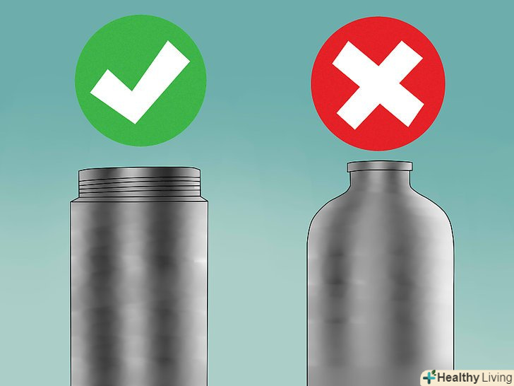 Виберіть пляшку з широкою шийкою. по кутах пляшок з вузькою шийкою можуть ховатися бактерії. У пляшок з широкою шийкою стінки не так сильно викривлені, тому бактеріям залишається зовсім мало місця. У таких пляшок отримати доступ до внутрішньої частини набагато простіше, що полегшує її очищення. [10]