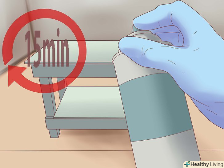 Розпиліть стриппер на поверхню меблів. переконайтеся, що ви розпорошили саме в тому місці, де протягом 15 хвилин ви будете видаляти поліуретан. Працюйте на ділянці 3 на 3 фути (1х1 метр).