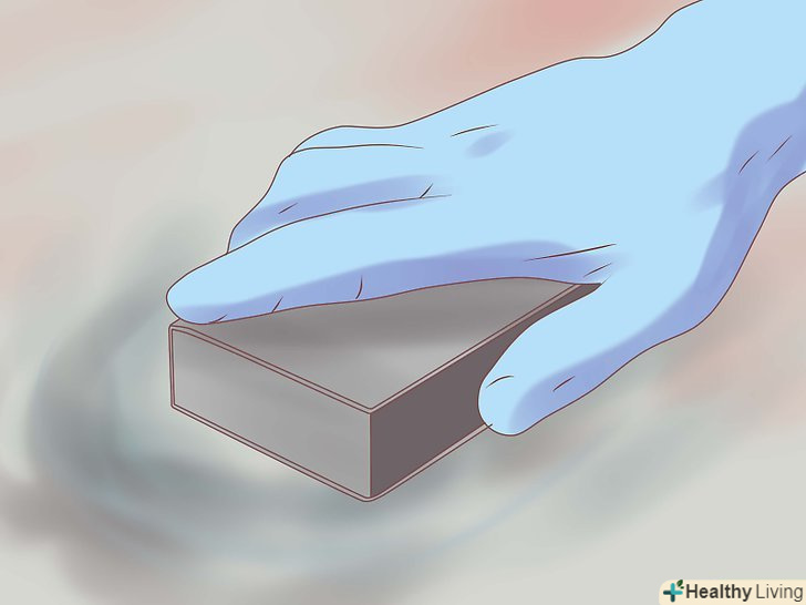 Використовуйте тонку металеву мочалку, щоб видалити поліуретан з щілин або обробленої деревини. нанесіть стриппер і почекайте і потім працюйте металевою мочалкою уздовж волокон для повного видалення. Постарайтеся, як можна більшу частину поверхні видалити за допомогою пластмасового шпателя, перш ніж скористатися металевою мочалкою. [5]