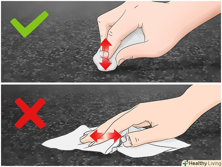 Не затирайте плями. коли видаляєте плями, промакивайте їх і тільки промакивайте. Ніколи не тріть плями-це не допоможе від них позбутися. Тертям ви лише ще сильніше втрете пляма в килим, що тільки погіршить стан справ. [10]