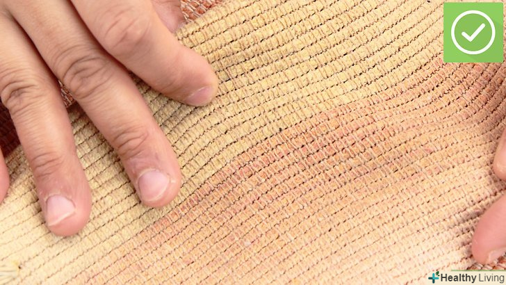- Злегка намочіть тканину чистою білою ганчіркою. ганчірка повинна бути м'якою, інакше можна зіпсувати тканину. Умочіть ганчірку в воду і відіжміть її. Притисніть ганчірку до розлучень, але не дуже сильно. Оббивка повинна бути вологою, але не мокрою. Потім вам потрібно буде висушити тканину швидше, ніж раніше. [19]