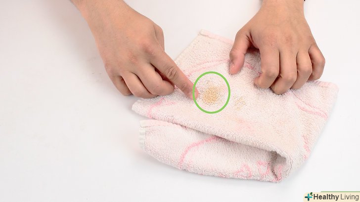- Промокніть пляму паперовим рушником. спочатку потрібно прибрати з тканини якомога більше рідини — це спростить подальшу роботу. Використовуйте звичайні білі паперові рушники, оскільки кольорові можуть забарвити тканину. [6]