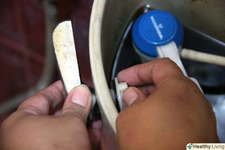 Підніміть важіль зливного бачка і натисніть його вниз через отвір в кінці стрижня ручки.