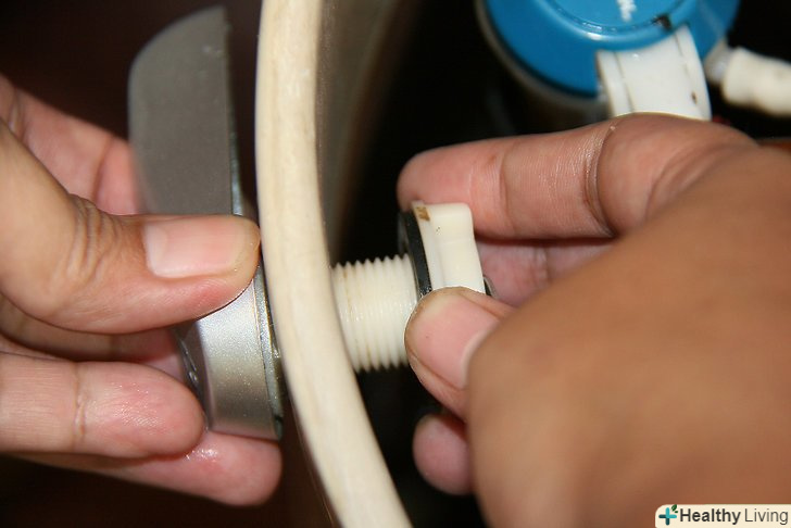 Відкрутіть гайку з задньої частини ручки. щоб зняти гайки зі зливного бачка, поверніть їх за годинниковою стрілкою.- Якщо гайка Пластикова, ви зможете відкрутити її пальцями.
