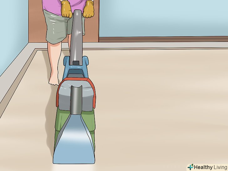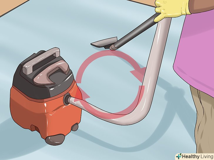 Зберіть розчин пилососом. після обробки зберіть видалену фарбу і розчин пилососом для вологого прибирання з герметичною колбою. Не можна залишати рідину, інакше на килимі з'явиться цвіль.