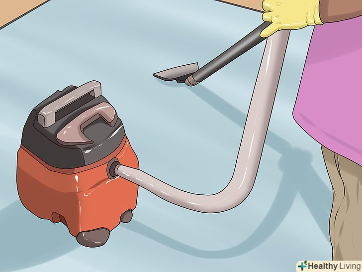 Зберіть засіб для чищення килима пилососом. речовина вбере значну частину фарби, яку можна зібрати пилососом. Використовуйте пилосос для вологого прибирання з герметичною колбою і захищеними від рідини електричними компонентами. Не використовуйте пилосос для сухого прибирання, інакше прилад може вийти з ладу.