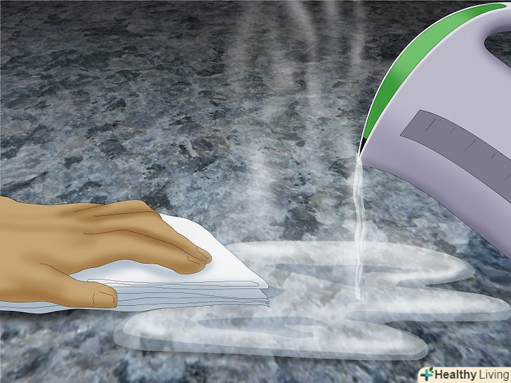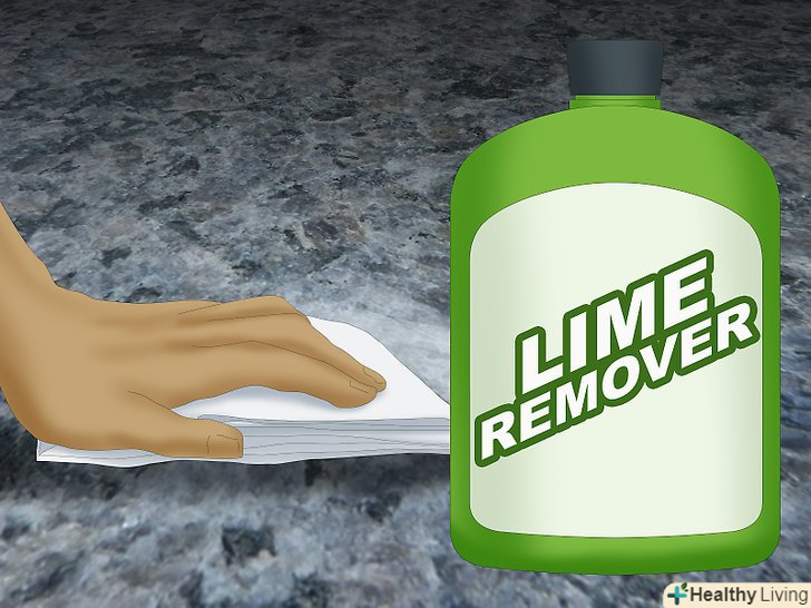 Використовуйте засіб для видалення вапняного нальоту. такі засоби дозволяють видалити наліт від жорсткої (вапняної) води. Як правило, в них міститься кислота, яка руйнує вапняний наліт і накип. [8] нанесіть продукт на стільницю і залиште на 5 хвилин. Зберіть речовину ганчіркою, промийте чистою водою і насухо витріть поверхню. [9]- Іноді потрібно повторне очищення, щоб повністю позбутися від нальоту.