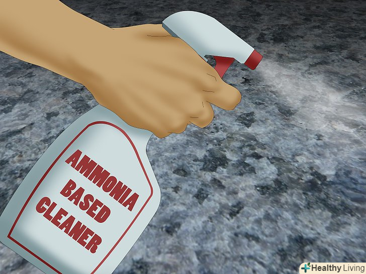 Аміачні миючі засоби. якщо рідина для посуду і вода не можуть впоратися з плямою, то використовуйте засіб на основі аміаку. Розпиліть або нанесіть засіб губкою, а потім витріть поверхню начисто. Не забудьте промити чистою водою і висушити стільницю, щоб на ній не залишилися розлучення. [4]- Перед використанням будь-якого засобу прочитайте вказівки на етикетці.