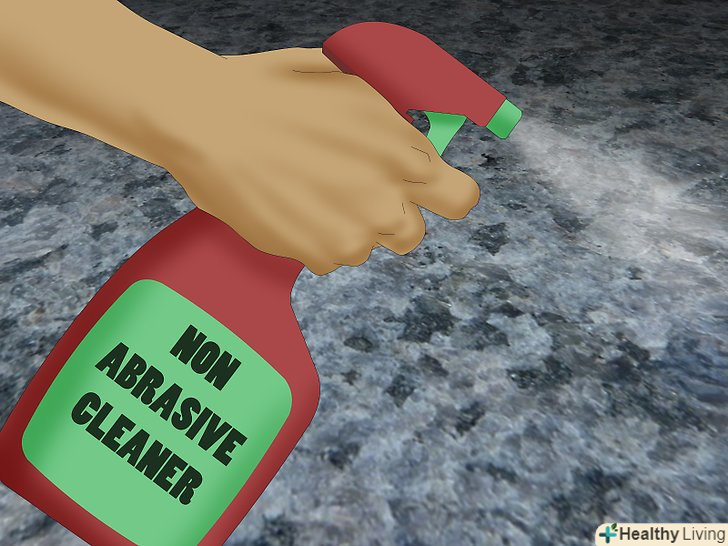Неабразивні чистячі засоби. Якщо у вас немає аміачного засобу, то використовуйте інший неабразивний продукт. Стільниці Corian легко подряпати, тому не купуйте абразивний засіб. Нанесіть продукт на поверхню і протріть чистою вологою серветкою. [5]- Можна залишити засіб на одну-дві хвилини для підвищення ефективності.