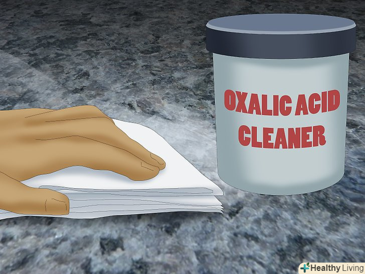 Чистячий засіб, що містить щавлеву кислоту. щавлева кислота допомагає позбутися від бурих плям, особливо на білій поверхні. Такий засіб можна придбати в будь-якому гіпермаркеті. Серед популярних продуктів з даними компонентом можна виділити "Sarma" і "Санокс". [6]- Нанесіть миючий засіб і залиште на кілька хвилин, потім зберіть ганчіркою і промийте чистою водою. Не забудьте висушити поверхню.