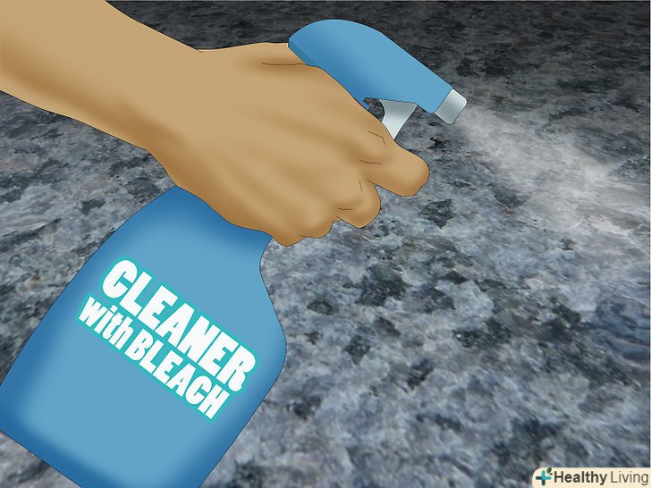 Засоби з відбілювачем. для білих стільниць Corian можна використовувати продукт, в якому міститься відбілювач. Матеріал стійкий до впливу відбілювача, якщо не залишати його на поверхні більше ніж на 16 годин. Також можна зробити розчин з відбілювача і води (вміст відбілювача не повинно перевищувати 50 відсотків). [7]- Залиште засіб на кілька хвилин, щоб продукт глибше проник в пляму, а потім промийте стільницю чистою водою.