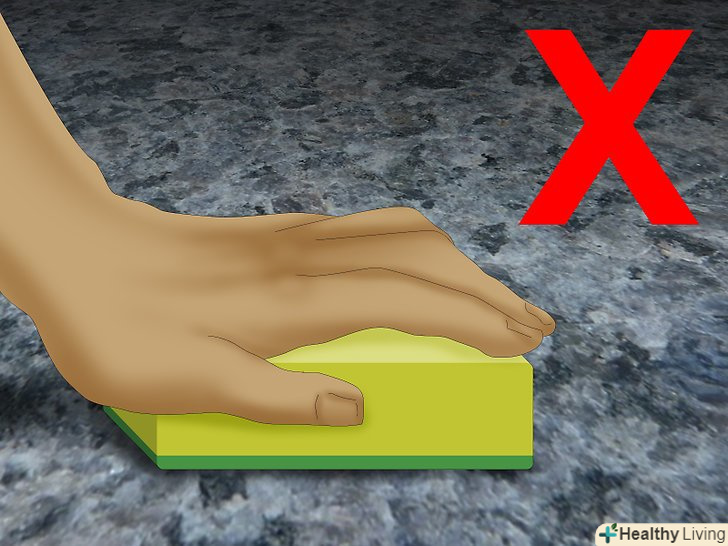 Не використовуйте жорстку губку. не слід використовувати губки для посуду з жорсткою стороною або використовуйте тільки м'яку сторону. До того ж, не можна чистити стільницю сталевий мочалкою і іншими грубими матеріалами. Будь-який жорсткий матеріал залишить на поверхні подряпини. [10]