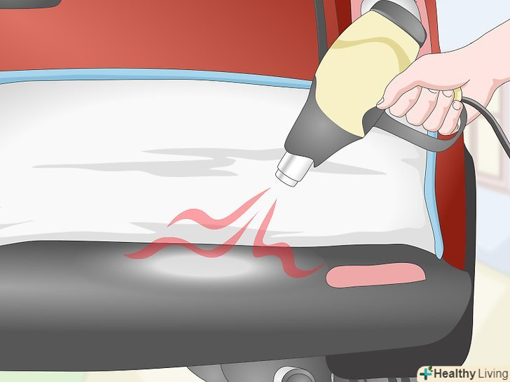 Тримайте будівельний фен в 10 см від поверхні предмета. Увімкніть фен і рухайте їм по вигорілому пластику невеликими колами. Не залишайте фен занадто довго на одному місці, щоб не обпекти пластик і щоб колір залишився рівномірним. [9]- Спочатку перевірте будівельний фен на непомітній ділянці, щоб переконатися, що вам сподобається підсумковий колір.