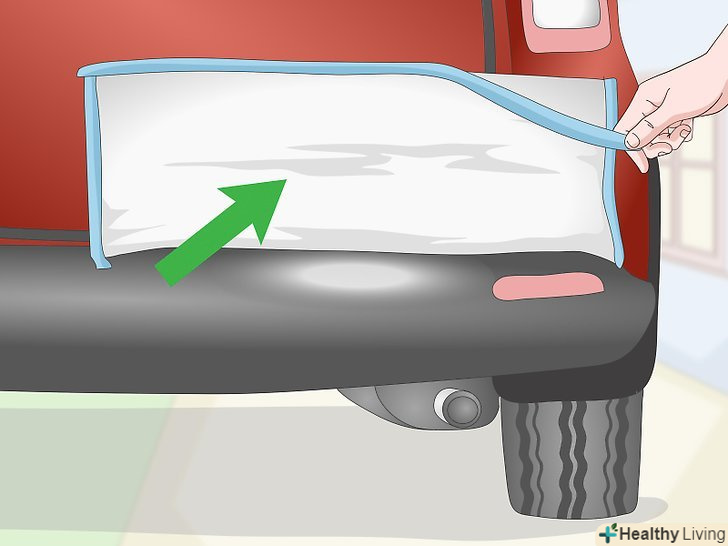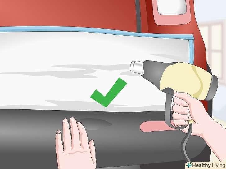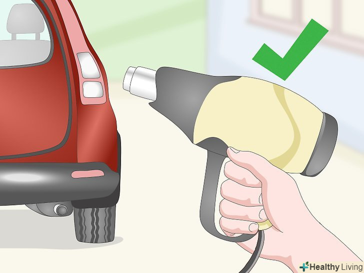 Перш ніж використовувати будівельний фен, накрийте найближчі непластикові предмети брезентом. при застосуванні будівельного фена колір непластикових поверхонь може деформуватися і змінитися. Якщо ж пластиковий предмет до чогось прикріплений, накрийте частини, які ви не хочете нагріти, вогнетривким брезентом.- Цей метод більше підходить для декоративних частин автомобіля і бампера. Не використовуйте його на чорному пластику, прикріпленому до займистих матеріалів (наприклад, на пластикових іграшках).