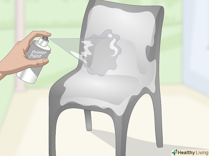 Нанесіть шар грунтовки, щоб краса краще пристала. розпиліть шар грунтовки на поверхню предмета. Не затримуйтеся надовго в одному місці, щоб шар вийшов рівномірним і тонким. Дайте грунтовці висохнути протягом часу, який вказано на упаковці (приблизно 30-60 хвилин). [12]- Грунтовку для пластику можна купити онлайн, в магазині товарів для рукоділля або в будівельному магазині.