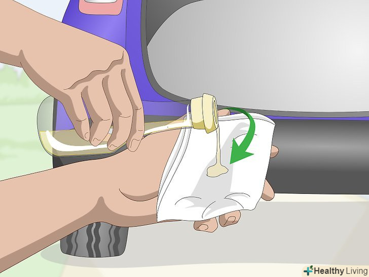 Налийте на тканину трохи оливкової олії. оливкова олія може допомогти відновити природний чорний колір пластику. Для цього необхідно очистити знебарвлені і вицвілі ділянки. Налийте трохи оливкової олії на тканину або паперовий рушник. Цієї кількості повинно вистачити, але при необхідності завжди можна додати ще. [1]- Замість оливкової олії можна використовувати дитяче або лляне масло. [2]