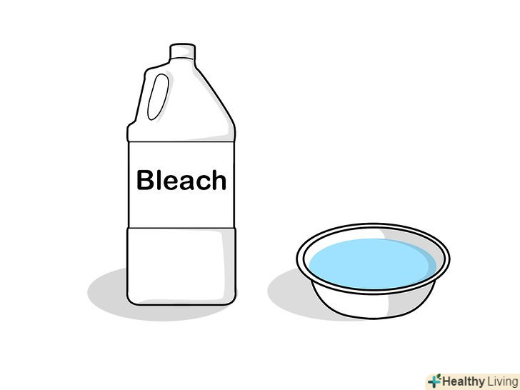 Змішайте відбілювач з гарячою водою. одягніть гумові рукавички, щоб захистити руки. Візьміть миску, відро або будь-яку іншу ємність не для пиття і наповніть її гарячою водою. Додайте у воду кристали відбілювача, щоб отримати насичений розчин. [10]