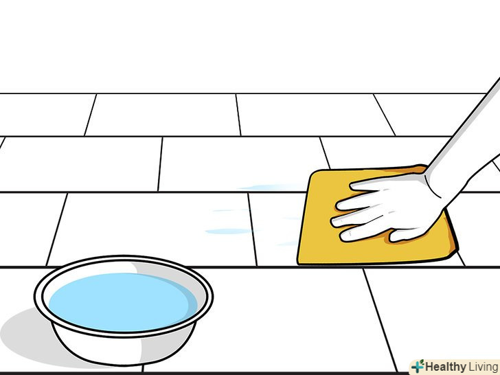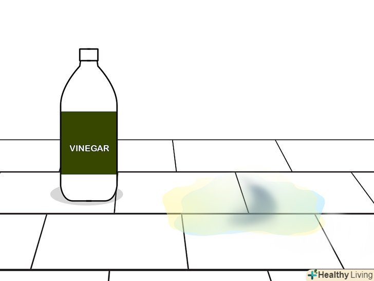 Нейтралізуйте відбілювач оцтом. вилийте трохи дистильованого білого оцту на ділянку, який обробили відбілювачем, щоб його нейтралізувати. Це не дасть краплях відбілювача зібратися на поверхні підлоги після очищення. [12]