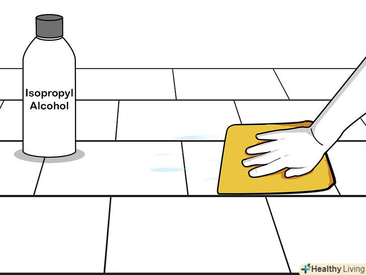 Перевірте поверхню дерева. відкладіть на час роботу над плямою. Замість цього знайдіть непомітне або маленьке пляма на дерев'яній підлозі. Промокніть цю ділянку змоченою тканиною, щоб перевірити вплив спирту на поверхню дерева. Якщо спирт проявить себе негативно, відмовтеся від цього методу. Нічого страшного. Є ще один спосіб, як можна видалити пляму. [6]- Спирт можна використовувати, навіть якщо після нього деревина злегка зміниться в кольорі. Досить відшліфувати підлогу і пройтися по ньому морилкою, щоб він знову став як новенький.