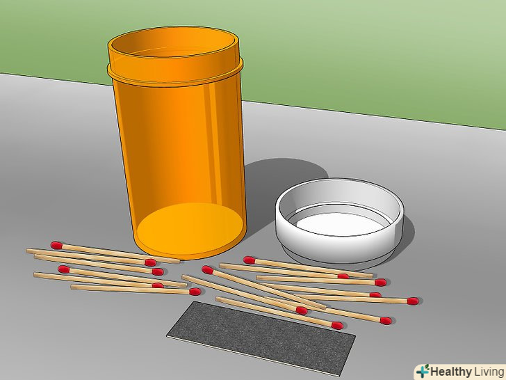 Носіть в баночці з-під ліків сірники. хоча сірники мають власне місце для зберігання, сірникову коробку, там вони можуть легко відволожитися або поламатися (наприклад, під час походу). Водонепроникна баночка з-під ліків допоможе уникнути цього. [10]- Не забудьте відірвати від сірникової коробки тертку і покласти її в баночку разом із сірниками.