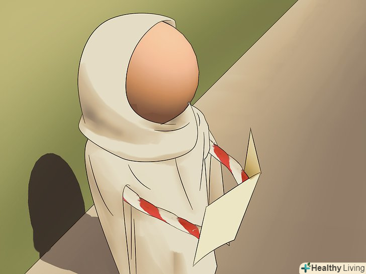 Помістіть в руки співочого пісняр. виріжте невеликий прямокутник паперу зі старого пісняра (краще використовувати непотрібну богослужбову книгу) і складіть його навпіл, щоб він нагадував мініатюрну книгу. Приклейте цю книгу до витягнутих рук співочого. [20]