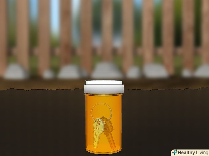 Тримайте в баночці запасний ключ. покладіть в баночку з-під ліків запасний ключ і зарийте її біля заднього двору або де-небудь ще в стороні від дороги. Чи не закопуйте її занадто глибоко — Біла кришка баночки повинна знаходитися врівень з землею. Покладіть поверх баночки камінь розміром з кулак так, щоб здавалося, що він лежить на звичному йому місці. [2]- Таким чином ви зможете заховати запасний ключ за межами будинку. Якщо раптом ви втратите або забудете свої ключі, то завжди зможете відкрити будинок за допомогою запасного ключа.