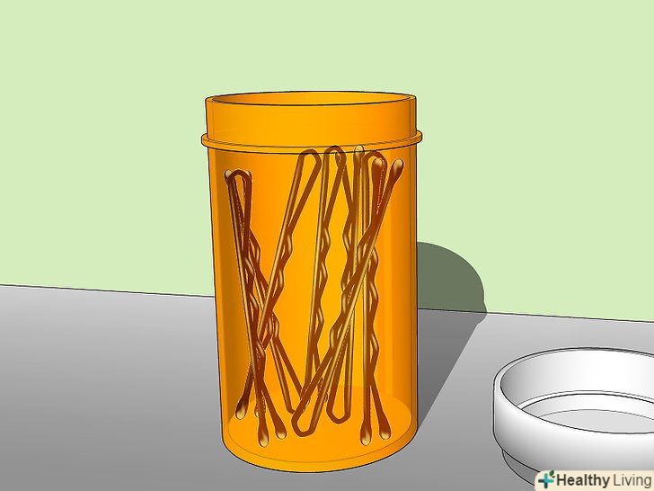 Зберігайте в баночках з-під ліків прикраси і косметичні предмети. шпильки, гумки для волосся та інші дрібні предмети часто втрачаються в ящиках столу і великих коробках. Для їх зберігання прекрасно підходять порожні баночки з-під ліків. Використовуйте одну баночку для шпильок, другу для сережок і так далі. При бажанні можна наклеїти на кожну баночку етикетку, щоб знати, що всередині неї. [3]- Якщо у вас є досить висока баночка з-під ліків, можна тримати в ній олівець для очей і кисті для макіяжу.