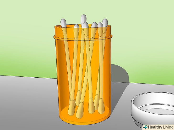 Тримайте в баночці з-під ліків ватяні палички. ватяними паличками зручно чистити невеликі трубки та інші дрібні предмети. Однак палички досить малі, і їх непросто зберігати так, щоб вони не розсипалися. Багато тримають ватяні палички в початковій упаковці, проте зручніше зберігати їх в порожній баночці з-під ліків, де вони завжди будуть під рукою. [4]- Нічого страшного, якщо вам не вдасться накрити баночку кришкою. Можна поставити відкриту баночку на столик у ванній, а кришку викинути або заховати на той випадок, якщо пізніше ви захочете використовувати баночку для інших цілей.