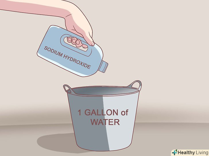 Використання гідроксиду натрію (луг) щоб відокремити хром від чорних металів і вуглецевої сталі. гідроокис натрію, зазвичай називається лугом, є їдким, дуже активною речовиною. Може розчиняти кілька типів металевих покриттів, в тому числі і хром, але реагує небезпечно з водою і алюмінієм, роз'їдаючи алюміній і виробляючи вогненебезпечний водневий газ. Таким чином, його можна використовувати тільки з предметами, які не використовують алюміній в якості основного матеріалу. Виконайте дії, зазначені нижче:- Змішайте 8 до 12 унцій (приблизно 227 мл до 355 мл) гідроксиду натрію з 1 галоном (приблизно 3,785 л.) води в посуді, виготовленої з нейтрального матеріалу (наприклад, надміцне пластмасове відро).