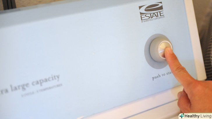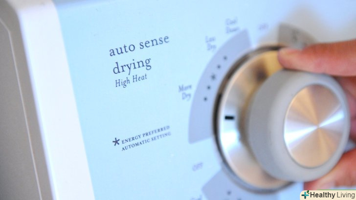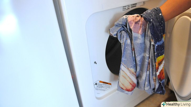 Помістіть мокрі, свіжо-випрані речі в сушарку (все ще повинна бути вологою).- Якщо ви бачите, що до одягу пристали шматочки мокрої серветки, пуху або просто сторонні предмети, відокремте її від речей, перш ніж класти в сушарку. Це буде досить утомливо, якщо Серветка під час прання розпалася на багато шматочків, але мокру серветку набагато легше прибрати, ніж коли вона виявиться на всіх речах, перетворившись в пух.