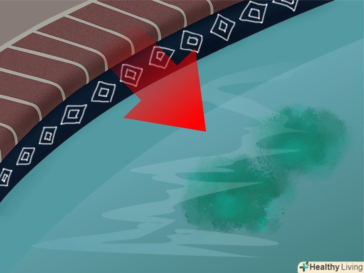 Видаліть поодинокі плями за допомогою соляної кислоти і щітки. обережно вилийте невелику кількість кислоти на шматочок труби з полівінілхлориду, а потім перелийте кислоту на пляму. Знайте, що якщо вся поверхня басейну покрита тонким шаром бруду, в місці обробки кислотою може утворитися яскрава пляма. [9]- В кінці засипте в воду засіб з хлором, щоб запобігти появі водоростей.