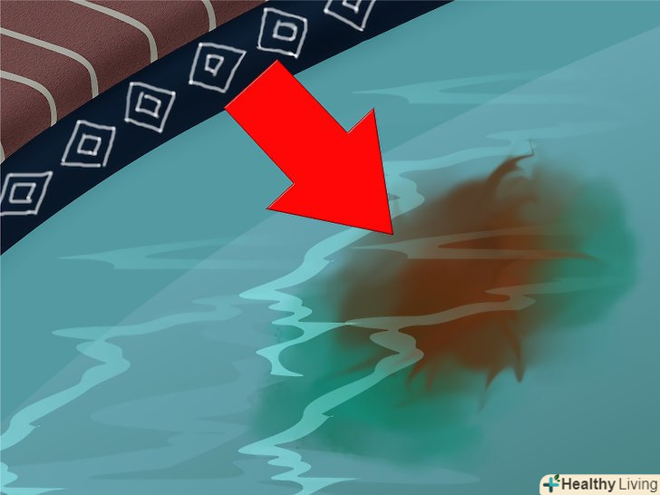 Пошукайте в басейні органічні плями. вони з'являються через листя, ягоди, водорості, хробаки, мертві тварини та органічне сміття, яке потрапляє в басейн. Якщо не прибрати сміття відразу ж, він осяде на дно і почне гнити. На щастя, видаляти органічні плями досить легко.- Органічні плями зазвичай мають зелений, коричневий, синьо-бордовий колір. Якщо на дні басейну лежить органічне сміття (наприклад, листя), плями, швидше за все, будуть органічними.