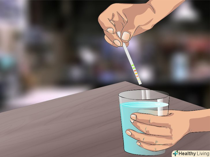 Використовуйте тестові смужки для вимірювання рівня металів у воді в домашніх умовах. Візьміть зразок води з середини басейну. Швидко занурте одну суху тест-смужку у воду. Чи не струшуючи з неї воду, потримайте її в повітрі нерухомо приблизно 15 секунд. Смужка почне змінювати колір. Співвіднесіть колір смужки з квітами на банку з тест-смужками. Існує безліч типів смужок для визначення різних речовин, але вас цікавить тільки рівень кислоти, лугу і вільного хлору. [4]- Використовуйте тест-смужки як мінімум раз на тиждень. Віднесіть зразок води в лабораторію раз на місяць для більш точної перевірки, особливо до початку сезону і в кінці перед закриттям басейну на зиму.
