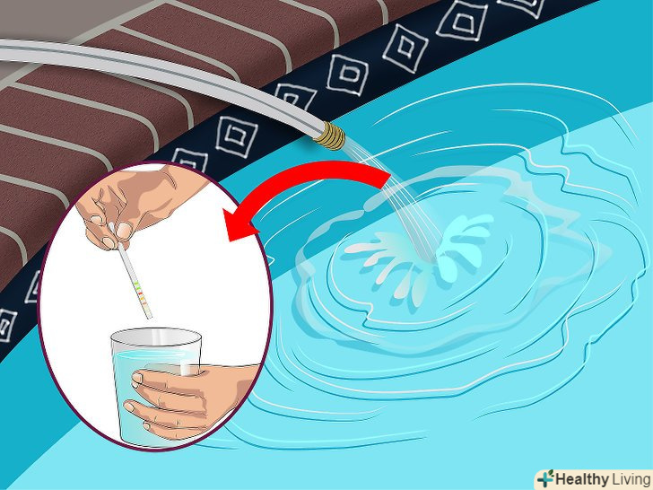 Доглядайте за басейном регулярно. запобігти появі плям простіше, ніж їх видалити. Регулярно віддавайте зразок води на аналіз або перевіряйте склад води вдома щотижня. Якщо ви наповнюєте басейн водою зі свердловини, перевіряйте цю воду, оскільки в ній може бути багато заліза, яке залишає сліди. [15]- Щотижня обробляйте воду речовиною з хлором, щоб запобігти утворенню водоростей.