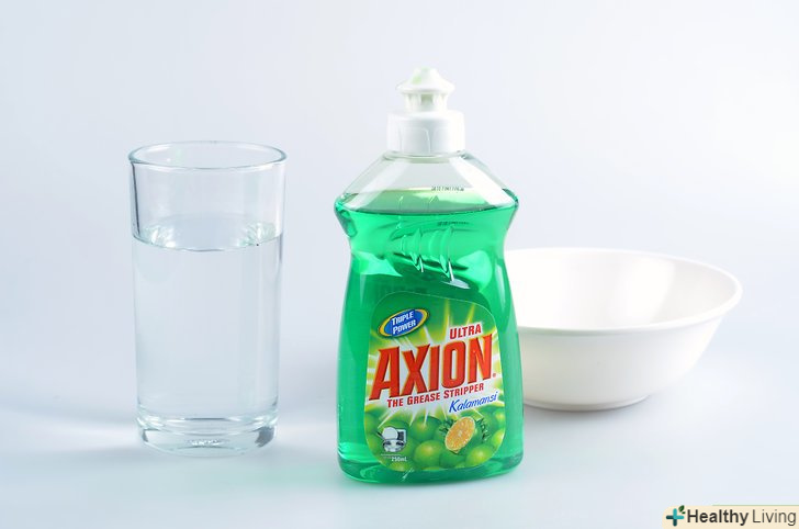 Змішайте 1/2 столової ложки рідини для миття посуду і 250 мл холодної води в мисці, щоб приготувати мильний розчин.