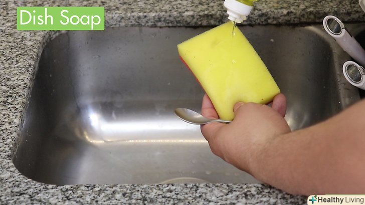 - Почистіть столові прилади, перш ніж використовувати їх перший раз. Навіть якщо вони здаються чистими, на них можуть бути пил, бруд або бактерії. Використовуйте гарячу воду, мило для посуду і м'яку губку або ганчірку для миття посуду, щоб очистити куплені столові прилади від бруду.