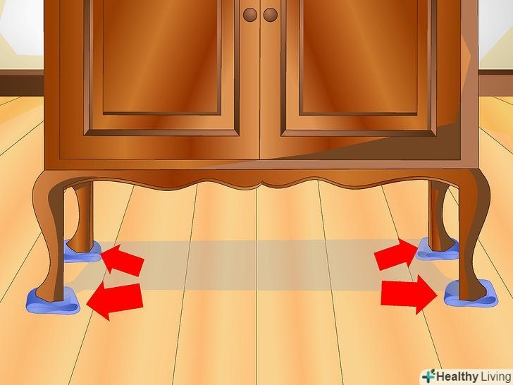 Використовуйте килимову стрічку або липучки , якщо не хочете, щоб предмет меблів рухався. це запобіжить рух, якщо до предмета не буде прикладена сила, але це не захищає підлогу від подряпин при переміщенні.