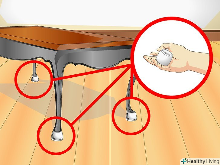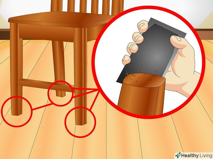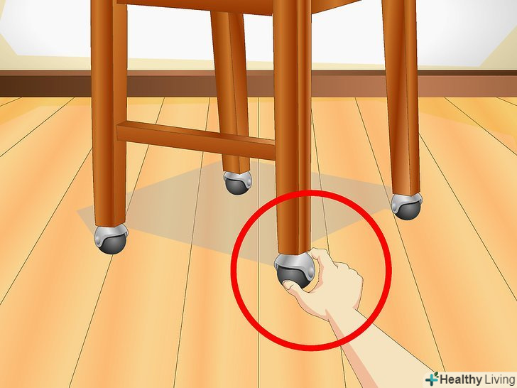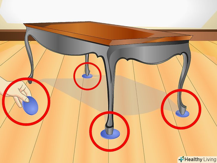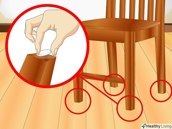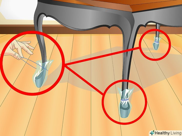Оберніть торець ніжок предмета меблів, в поліетиленовий пакет , використовуючи гумку, це запобіжить подряпини на підлозі, поки є пакет на ніжці.