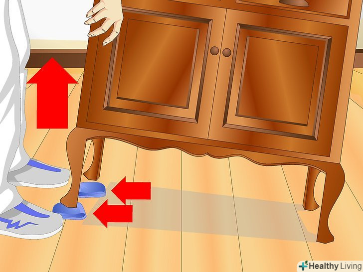 При переміщенні важких меблів, нехай вона ковзає по бавовняному рушнику, підкладеному під ніжку, в той час, як помічник нахиляє предмет.
