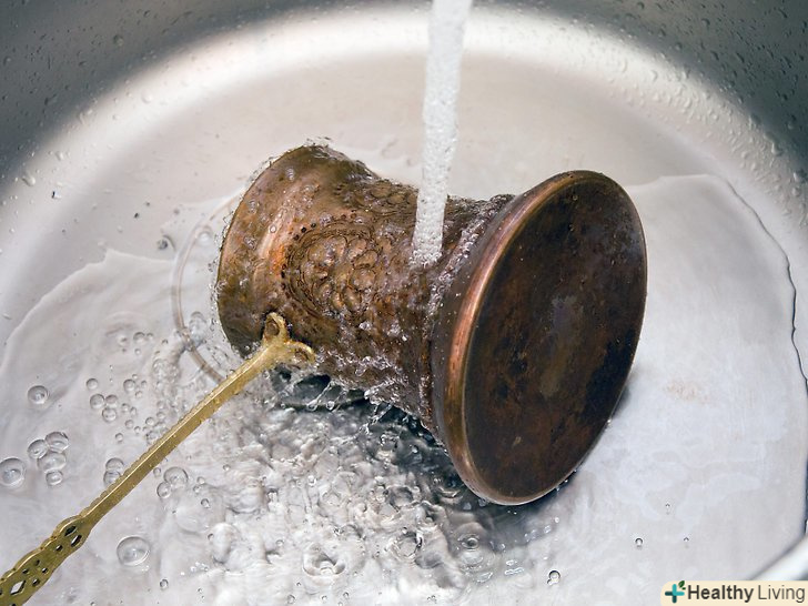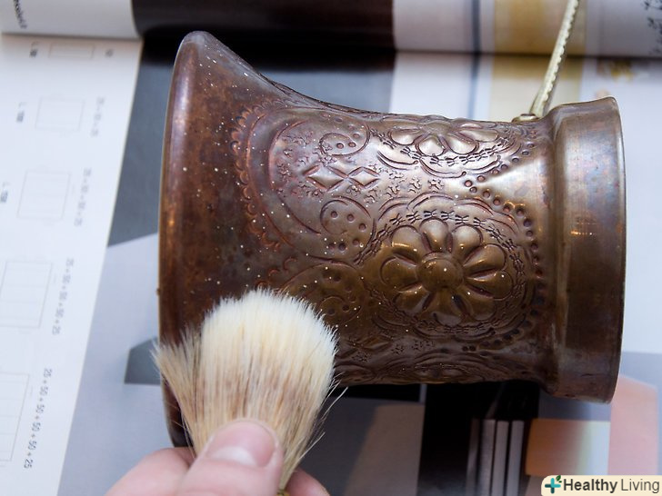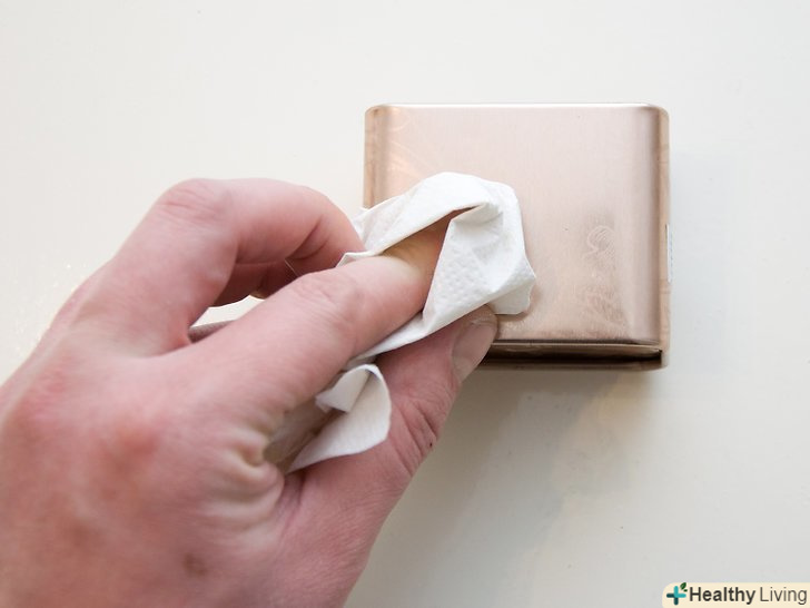 Промийте виріб під водою і нанесіть неагресивну полірування. промийте виріб водою, потім висушіть його чистою ганчіркою.- При поліровці виробів, покритих латунню, якась частина напилення може стертися. Якщо хочете відполірувати такий виріб, не притискайте ганчірку дуже сильно. [28]