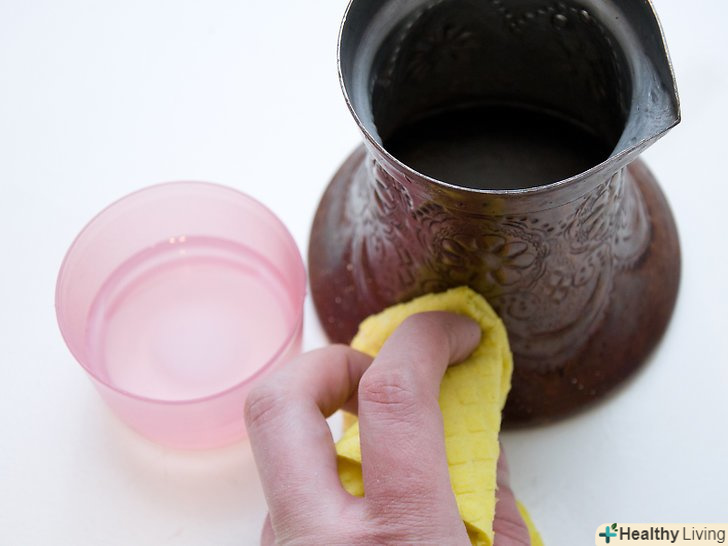 - Йогурт . Намажте поверхню виробу несолодким йогуртом. Молочна кислота в цьому продукті зруйнує наліт на латуні. Дайте йогурту висохнути, потім промийте виріб водою і висушіть поверхню чистою ганчіркою. [19]