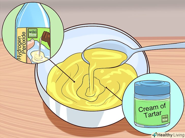 Використовуйте натуральні альтернативи. плями вапняного нальоту і іржі можна вивести сумішшю перекису водню і виннокислого калію. Змішайте обидва інгредієнти, щоб вони перетворилися в однорідну кашецеобразную масу, після чого нанесіть поверх плям. Через 10 хвилин обробіть плями капроновою щіткою або пемзою до повного видалення. [17]- Саморобні суміші на зразок перекису водню з виннокислим калієм кращі для тих, хто турбується про вплив хімічних засобів для чищення на здоров'я та екологію.