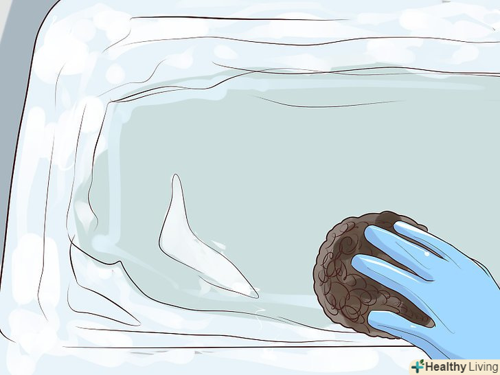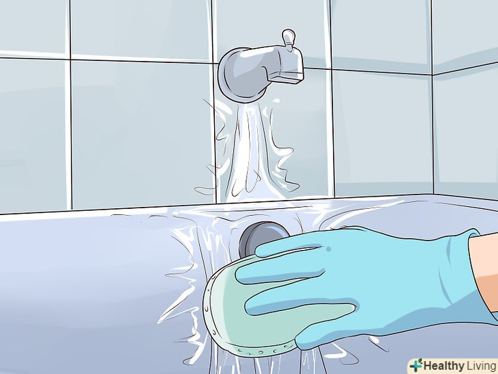 М'яко відмийте плями губкою. використовуйте м'яку губку або серветку з мікрофібри, щоб на стінках не залишилося слідів або подряпин. Обробіть плями м'якими круговими рухами. В кінці змийте бруд і чистячий розчин, після чого ванна повинна повністю висохнути. [13]- Якщо необхідно, нанесіть розчин ще раз. Мийте і повторюйте до тих пір, поки не вийде видалити плями.