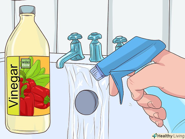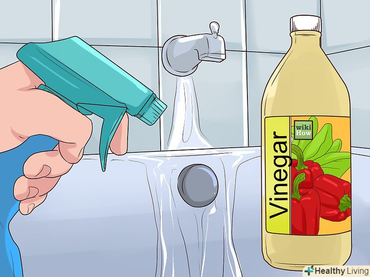 Нанесіть оцет на плями. білий оцет – це прекрасне натуральне засіб для чищення, особливо для гладких поверхонь на зразок акрилу, яке легко виводить плями. Оцет слід додати в розпилювач і завжди мати під рукою при очищенні ванни. Щедро нанесіть оцет, щоб повністю обробити забруднену ділянку. [2]- Відмінною альтернативою оцту стане лимонний сік, якщо в холодильнику знайшлися лимони.