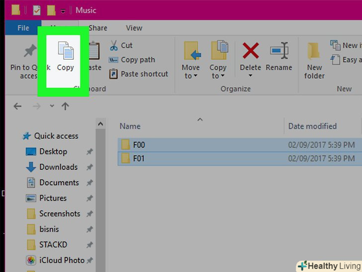 Виділіть всі папки, що містяться там, виберіть командукопіювати у вкладці менюупорядкувати .