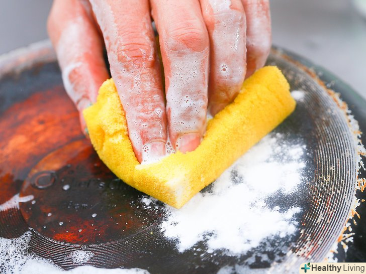 Повторіть з харчовою содою. Якщо на сковороді ще залишилася Гар, покрийте її шаром харчової соди. Додайте в сковороду стільки води, щоб покрити соду, доведіть її до кипіння і кип'ятіть на повільному вогні ще 15-30 хвилин. [5] зачекайте, поки вода охолоне, а потім очистіть пляму.