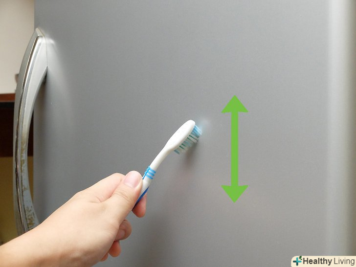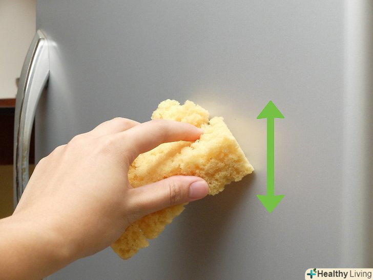 - Візьміть чисту губку і змочіть її водою. Протріть двері холодильника губкою вздовж напрямку текстури.