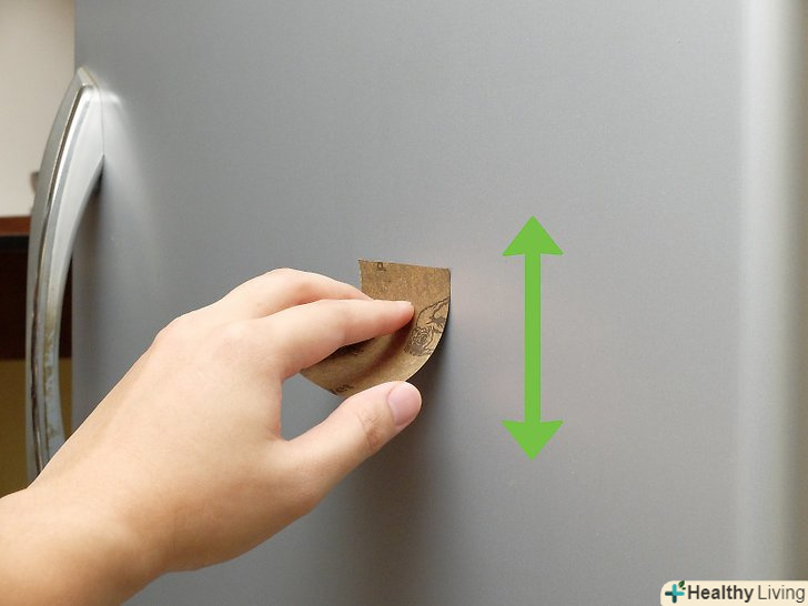 - Після того як подряпина зникне, відшліфуйте всі двері холодильника останньою використаної вами наждачним папером, рухаючись уздовж текстури металу. [8]