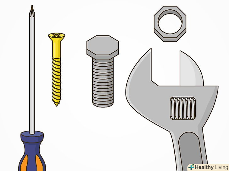 Візьміть відповідні інструменти для роботи з тією частиною ліжка, яку ви зібралися полагодити. подивіться, яким чином влаштовано стикове з'єднання ліжкового каркаса в тому місці, звідки виходить скрип. Якщо присутній кріплення на шурупах, візьміть викрутку відповідного розміру. Якщо є кріплення на болтах, вам буде потрібно гайковий ключ.